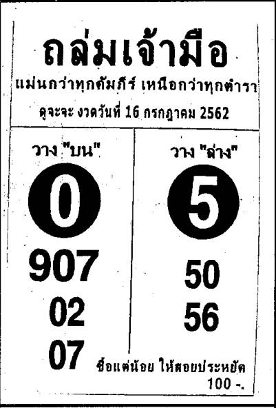 ตรวจหวยย้อนหลัง หวยออกอะไร ตรวจสลากกินแบ่งรัฐบาล 16 กรกฎาคม.